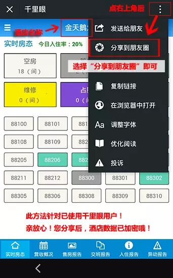 我要得微信订房系统!如何分享千里眼至朋友圈?